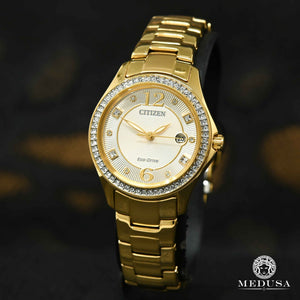 Une déclaration chatoyante est faite avec le dernier ajout à la collection Crystal. Cette montre élégante brille de mille feux avec 70 cristaux entourant le boîtier en acier inoxydable doré et le cadran champagne à 3 aiguilles et possède un bracelet en acier inoxydable doré fermé par une boucle déployante. Dotée de notre technologie Eco-Drive qui est alimentée de manière durable par n'importe quelle lumière et n'a jamais besoin de batterie, cette montre tendance ajoutera de l'éclat à votre look de jour comme de soirée et une élégance moderne à votre poignet.