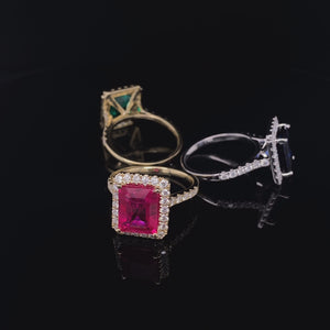 Bague rubis Oval avec diamants. Cette incroyable bague sertie de diamants est assemblée sur un anneau fait d’or 14K.