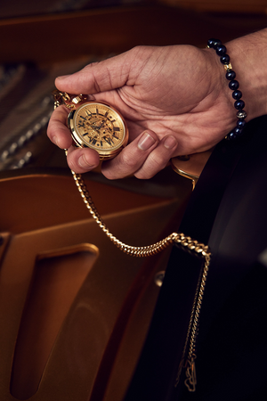 La nouvelle montre de poche Bulova Sutton vous permet de découvrir les fondements de l'horlogerie américaine, lorsque les horlogers américains comme Joseph Bulova étaient à la pointe du chronométrage et que les montres de poche étaient de rigueur. Le boîtier sophistiqué en acier inoxydable doré poli est doté d'un cristal minéral et comporte une couronne de remontage protégée par un nœud qui ajoute une touche moderne à cette silhouette classique. Le cadran doré comporte des chiffres et des aiguilles romains argentés, avec une ouverture centrale qui offre une vue sur le fonctionnement interne de la montre. Le mouvement automatique squeletté qui anime la montre possède 21 rubis et une réserve de marche de 42 heures. Le look historique est complété par une chaîne en acier inoxydable doré de 15 pouces qui se termine par un clip à ressort en forme de diapason pour une fixation sécurisée. Réinterprétation moderne d'un classique américain, la montre de poche Bulova Sutton transporte son propriétaire avec un raffinement classique. Calibre : 8N24