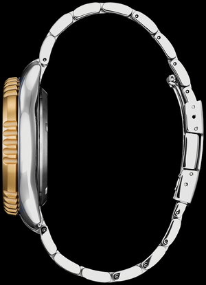 Un classique indémodable. La montre pour hommes Promaster Plongée professionnelle à mouvement automatique nouvellement repensée de Citizen de la première version de cette montre offre une immersion dans l’histoire de la version originale. Elle a été lancée en 1989, au grand bonheur de la nouvelle génération d’amateurs de ce type de montres. Ce modèle se compose d’un boîtier de 44 mm en 3 pièces, d’un verre saphir antireflet ainsi que d’un boîtier et un bracelet en acier inoxydable à deux tons argent et or. La lunette rotative bleu foncé, dotée d’un anneau aux teintes or en aluminium facilitant la manipulation, entoure le cadran noir aux aiguilles et aux marqueurs luminescents. Ce modèle, muni d’une couronne vissée et hydrorésistant jusqu’à 200 mètres, est conforme à la norme ISO. En outre, il est offert dans un boîtier de collection exclusif en forme de coffre de plongée. Calibre : 8204.