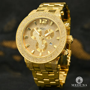 Cette montre Joe Rodeo est décorée avec des diamants véritables de haute qualité et est livrée avec un mouvement chronographe SWISS entièrement fonctionnel, un boîtier en acier inoxydable et un dos en acier inoxydable numéroté et gravé individuellement. Étanche jusqu'à 100m (330ft). Cette montre en diamant est garantie à 100% tout neuf et authentique et sera livrée dans un emballage de fabrication original avec deux bandes supplémentaires et tous les documents originaux.