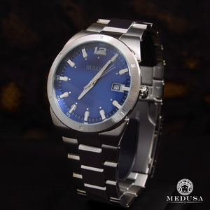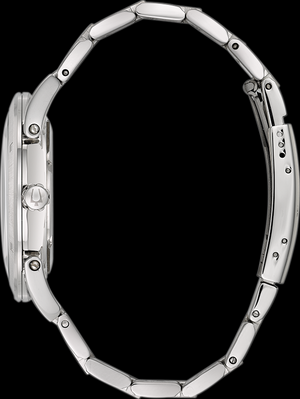 From the classic collection. Stainless steel with dome-shaped crystal, two-level blue sunray dial, calendar, seconds hand, luminous hands and markers, screw-down crown and double-press deployant clasp.