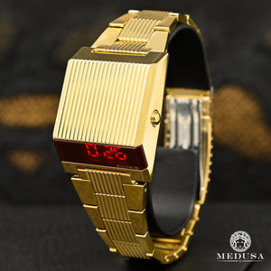 By infusing modern elements into some of Bulova's most iconic and nostalgic watches, the Archive series continues with the digital LED Computron. The elegant gold stainless steel design features a red LED display, extended digital functionality with dual time zone features, and a distinctive retro design that is as relevant today as it was in the 1970s.