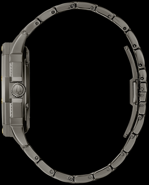 New in the men's Crystal collection, this watch features an 8N26 automatic movement in a gray ion-plated stainless steel case and bracelet with deployant clasps and double pushers. It is adorned with 251 crystals on the bezel, bracelet, and gray ion-plated skeleton dial. Water resistant to 30 meters.