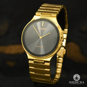 The latest member of the CITIZEN Stiletto collection, this unisex watch features a unique asymmetrical case for a bold and modern style not to be missed. The gold stainless steel case and bracelet are paired with a black two-hand dial, and the crown is carefully hidden inside the case for a completely seamless look and feel. It is also an Eco-Drive watch, sustainably powered by light and therefore never needing a battery. For anyone looking for a luxury watch that will stand out from the rest, this is the perfect accessory.