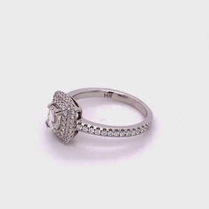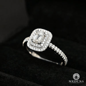 Diamond solitaire style engagement ring with a Princess Cut. The diamond is the most common precious stone for an engagement ring. It is the ultimate emblem of love because it symbolizes purity and eternity.