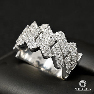 Cuban Link Diamond Ring in White Gold 10-Karat