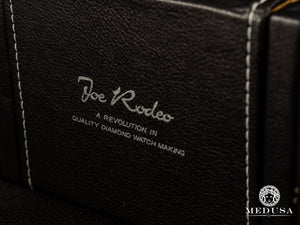This Joe Rodeo watch is decorated with genuine high-quality diamonds and comes with a fully functional SWISS chronograph movement, a stainless steel case, and a numbered and individually engraved stainless steel back. Water resistant up to 100m (330ft). This diamond watch is guaranteed 100% brand new and authentic and will be delivered in original manufacturer packaging with two additional bands and all original documents.