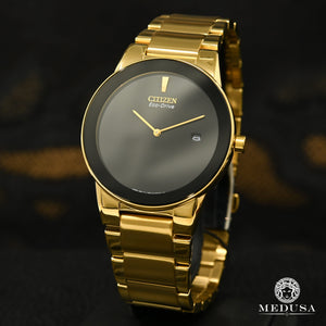 The refined yet elegant design of the Axiom offers a day-to-night fashion option for passionate trendsetters. Presented in gold stainless steel with a black dial, a date, gold stainless steel accents, and the intriguing feature of edge-to-edge glass.