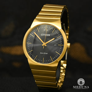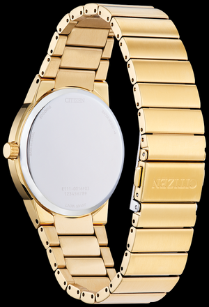 The refined and elegant look of the Axiom collection watches makes it the ideal accessory, from morning to night, for fashion-forward individuals. This model features a stainless steel bracelet with gold tones topped with a black three-hand dial, enhanced with golden accents and housing a date indicator. Water-resistant up to 30 meters. Equipped with our Eco-Drive technology, this watch is powered by light in all its forms. Never needs a battery.