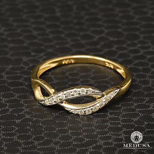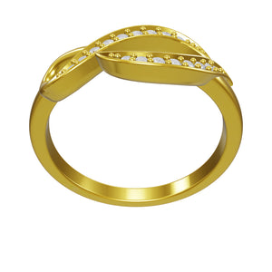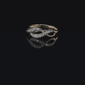''Infinity'' style diamond ring. This incredible diamond-studded ring is set on a band made of Yellow Gold 10K.