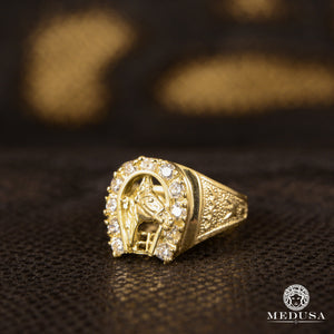 Horseshoe Iron ring in gold set with stones