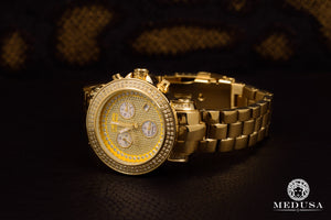 This Joe Rodeo watch is decorated with high-quality genuine diamonds and comes with a fully functional SWISS chronograph movement, a stainless steel case, and a numbered and individually engraved stainless steel back. Water-resistant up to 100m (330ft). This diamond watch is guaranteed 100% brand new and authentic and will be delivered in original manufacturer packaging with two additional bands and all original documents.