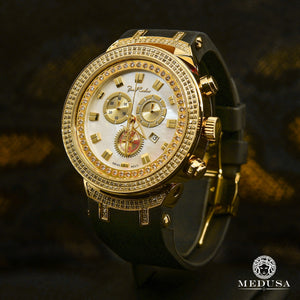 This Joe Rodeo watch is adorned with high-quality genuine diamonds and comes with a fully functional SWISS chronograph movement, a stainless steel case, and a numbered and individually engraved stainless steel back. Water-resistant up to 100m (330ft). This diamond watch is guaranteed 100% brand new and authentic and will be delivered in original manufacturer packaging with two additional straps and all original documents.