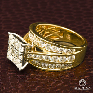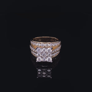 Square style diamond ring. This incredible diamond-studded ring is assembled on a band made of Yellow Gold 10K.