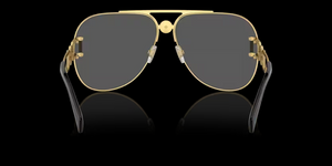 Presentation of the butterfly-style temples reinvented by Versace. This oversized pilot shape embodies an iconic yet always fresh style.