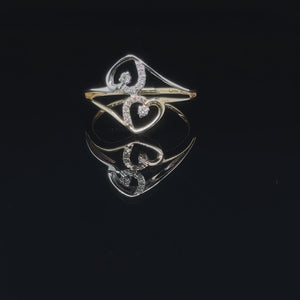 Bague à diamants style ''Coeur''. Cette incroyable bague sertie de diamants est assemblée sur un anneau fait d’or jaune 14K.
