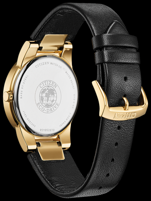 Le design raffiné mais élégant d'Axiom offre une option de mode de jour comme de nuit pour les créateurs de tendances passionnés. Présenté dans un boîtier en acier inoxydable doré avec un bracelet en cuir noir, un cadran noir et la caractéristique intrigante du verre bord à bord. Doté de notre technologie Eco-Drive – alimenté par la lumière, n’importe quelle lumière. Jamais besoin de batterie.