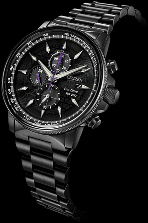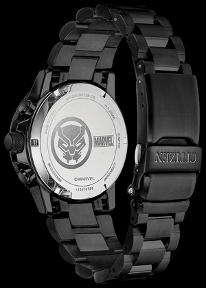 Laissez sortir le guerrier qui sommeille en vous grâce à l’esthétique puissante de la nouvelle montre Marvel Panthère noire de CITIZEN, présentant des motifs tribaux d’inspiration wakandaise et d’audacieux marqueurs argentés. Rehaussée d’accents violets, cette montre est dotée d’un boîtier en acier inoxydable noirci par placage ionique avec finition chroma noire, d’un bracelet en acier inoxydable noirci par placage ionique, d’un cadran orné de motifs tribaux noirs et d’un indicateur de date. Dotée de la technologie Eco-Drive de CITIZEN et alimentée par la lumière, sous toutes ses formes. N’a jamais besoin de pile. ©2019 MARVEL.