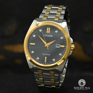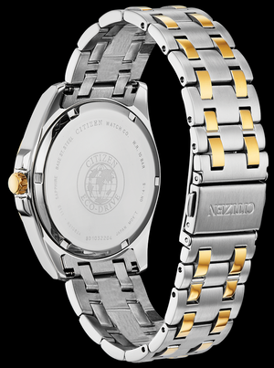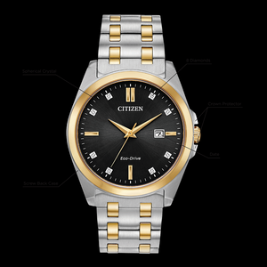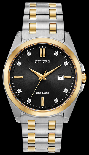 Cette collection CITIZEN® Corso propose des garde-temps rehaussés d'index en diamant vibrants dans une combinaison de simplicité fonctionnelle avec une touche d'élégance. Ce garde-temps, présenté ici dans un boîtier et un bracelet en acier inoxydable bicolore, ajoute une touche supplémentaire avec le cadran noir contrastant. Doté de notre technologie Eco-Drive – alimenté par la lumière, n’importe quelle lumière. Jamais besoin de batterie.