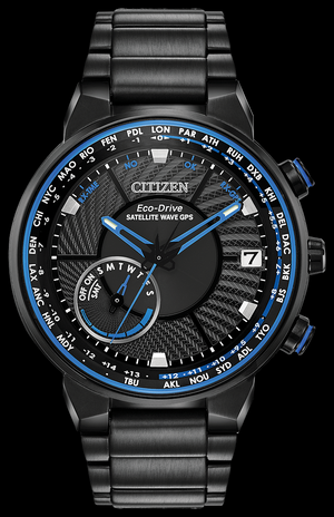 Plus audacieux et plus lumineux. Avec sa conception technique et architecturale améliorée, le Satellite Wave GPS Freedom de CITIZEN® est en tête de peloton avec la réception de signaux la plus rapide au monde grâce à la navigation GPS. Montre avec un boîtier et un bracelet en acier inoxydable noirci par placage ionique, un cadran noir aux accents bleus brillants, ce modèle est doté d'une technologie d'horlogerie par satellite GPS, d'une réception mondiale et d'un réglage de l 'heure dans 40 fuseaux horaires. Doté de la technologie Eco-Drive de CITIZEN® et alimenté par la lumière, sous toutes ses formes. N’a jamais besoin de pile.