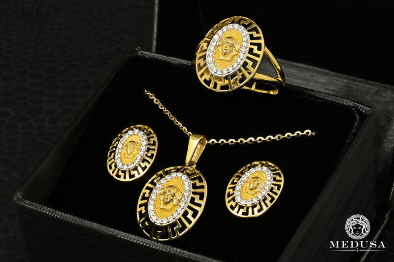 Ensemble chaîne avec pendentif, boucle d'oreilles et bague.