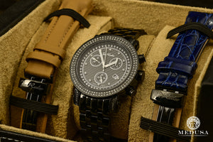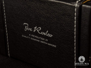 Cette montre Joe Rodeo est décorée avec des diamants véritables de haute qualité et est livrée avec un mouvement chronographe SWISS entièrement fonctionnel, un boîtier en acier inoxydable et un dos en acier inoxydable numéroté et gravé individuellement. Étanche jusqu'à 100m (330ft). Cette montre en diamant est garantie à 100% tout neuf et authentique et sera livrée dans un emballage de fabrication original avec deux bandes supplémentaires et tous les documents originaux.