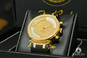 Cette montre Joe Rodeo est décorée avec des diamants véritables de haute qualité et est livrée avec un mouvement chronographe SWISS entièrement fonctionnel, un boîtier en acier inoxydable et un dos en acier inoxydable numéroté et gravé individuellement. Étanche jusqu'à 100m (330ft). Cette montre en diamant est garantie à 100% tout neuf et authentique et sera livrée dans un emballage de fabrication original avec deux bandes supplémentaires et tous les documents originaux.