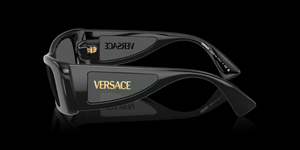 Une version plus étroite de la forme rectangulaire classique, cette monture fait un clin d'œil à la scène de la mode des années 90 avec ses contours épurés et son profil charismatique à dessus plat. Les embellissements emblématiques de Versace allient héritage et style résolument moderne.